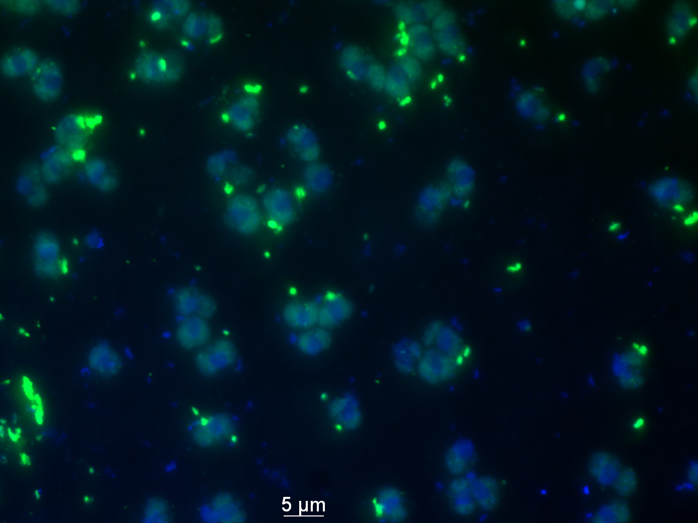 The role of viral lysis on C and N assimilation in marine phytoplankton was investigated in collaboration with the NIOZ, Texel. Incubation experiments with 15N- and 13C-labeled substrates in a phytoplankton culture (Phaeocystis globosa) revealed no significant difference in total C and N assimilation until the point of viral lysis (PgV-07T), though single cell nanoSIMS analyses showed that C and N incorporation by infected algal cells was only ~50% of the incorporation by non-infected cells. These results indicate that viral infection already before viral lysis triggers the exudation of polymeric N-rich organic material by algal cells. Since up to 20% of marine microorganisms maybe infected, these exudates may play an important role in Oceanic C and N cycling.