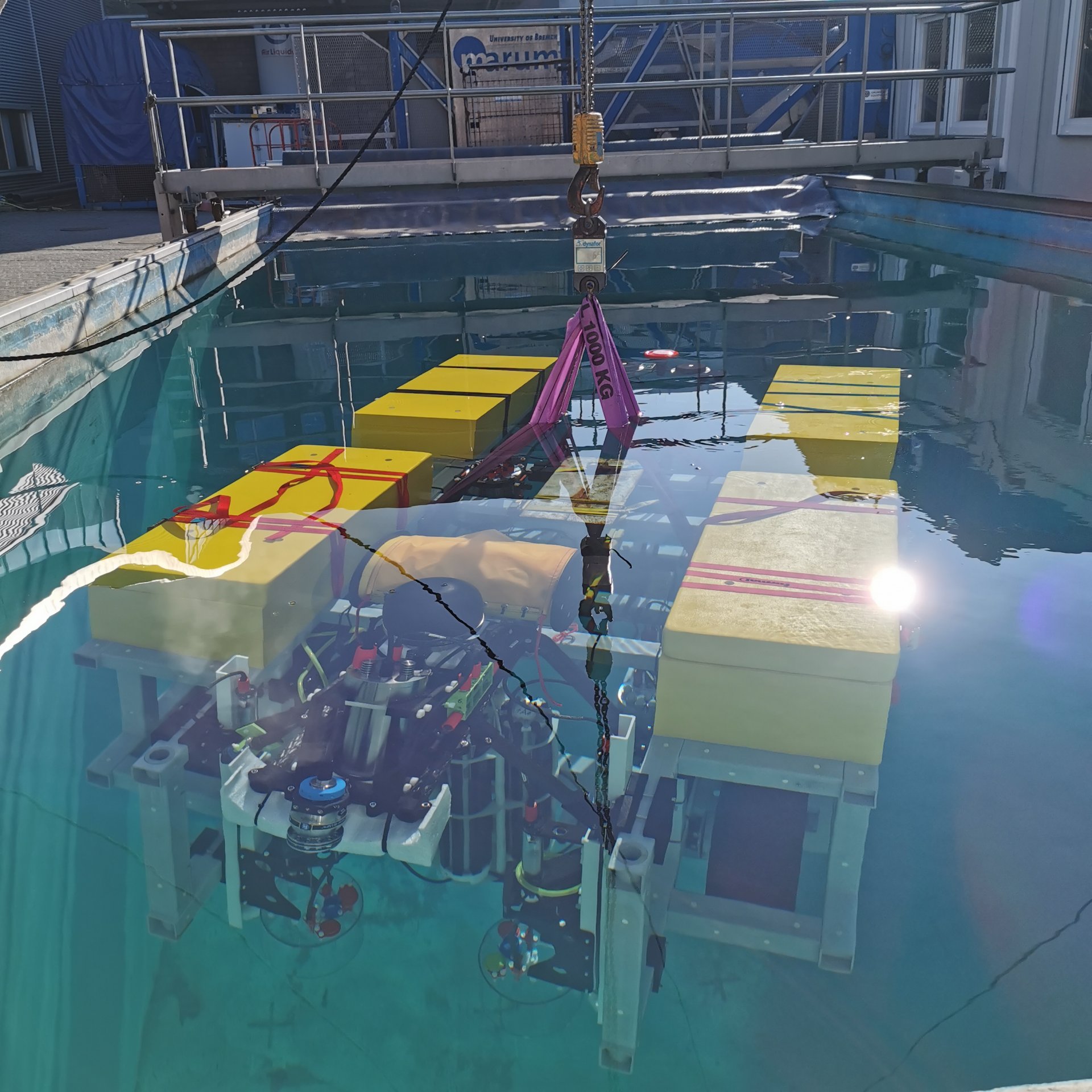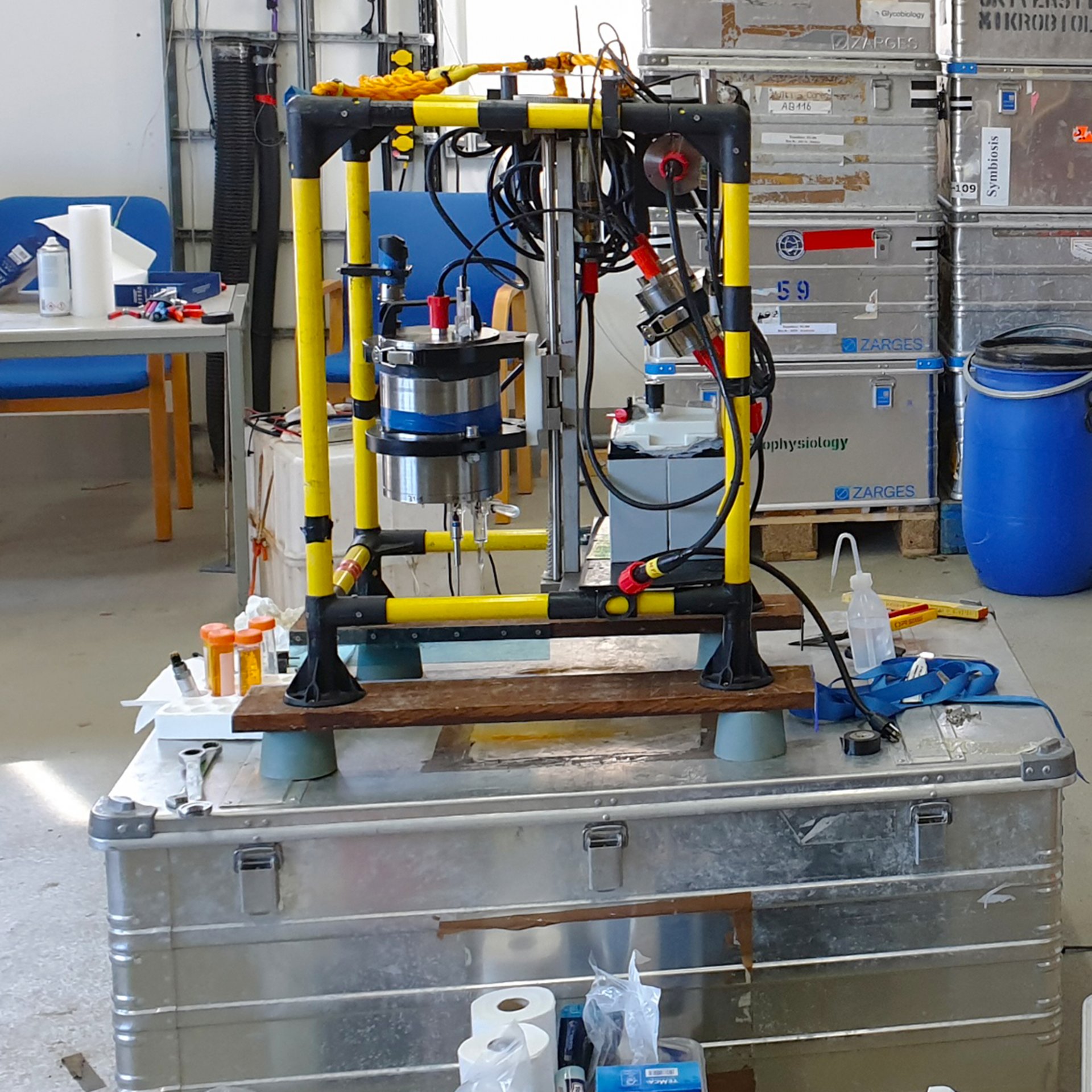 In enger Zusammenarbeit mit dem AWI wurde 2020/21 ein neuer Crawler in der Landerhalle entwickelt und gebaut. Ziel ist ein Gerät, dass ein Jahr autark am Meeresboden unterwegs ist und Proben nimmt. Ausgestattet ist es mit zwei benthischen Kammern und einer ganzen Batterie an Profiler-Sensoren, die immer wieder durchwechseln und ständig an anderen Stellen neue Messungen ausführen können. Diese Sensoren messen Werte wie Sauerstoffgehalt, Temperatur, pH-Wert etc.
