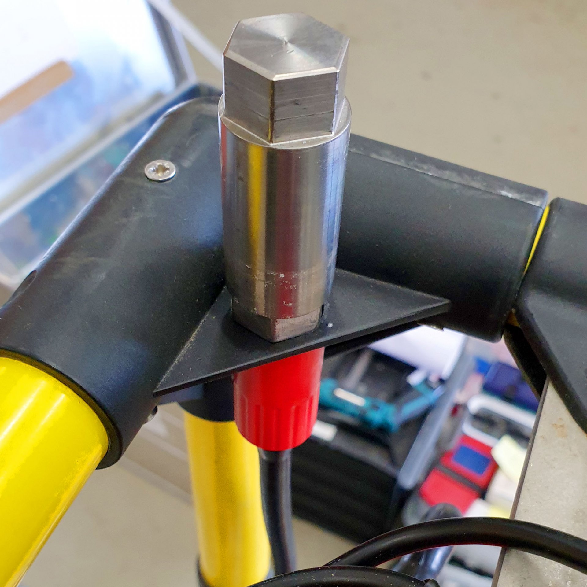 Die Motoren, die die Geräte an Trägersystemen steuern, müssen vor Ort im Meer eingeschaltet werden. Dafür gibt es teure Schaltsysteme zu kaufen. Da sie häufig verwendet werden, überlegte sich ein Mitarbeiter der Landerhalle eine eigene Lösung, die deutlich kostengünstiger ist. Er baute in eine kleine Titanhülle einen Reed-Kontakt. Der besteht aus zwei metallischen Kontaktenden, die in einem Glasrohr eingeschmolzen sind. Durch einen Magneten können sie aktiviert werden und funktionieren dann wie ein Schalter. Zur Aktivierung wird von dem Tauchroboter, der das Gerät zum Meeresboden gebracht hat, ein Magnet an den Schalter herangeführt. Der Reed-Schalter reagiert, so dass die Motoren starten und die Messungen – zum Beispiel am Mikroprofiler – beginnen. Die Lösung funktioniert deshalb so gut, da keine elektronischen Bestandteile vorhanden sind, die vor Wasser und hohem Druck geschützt werden müssen.
