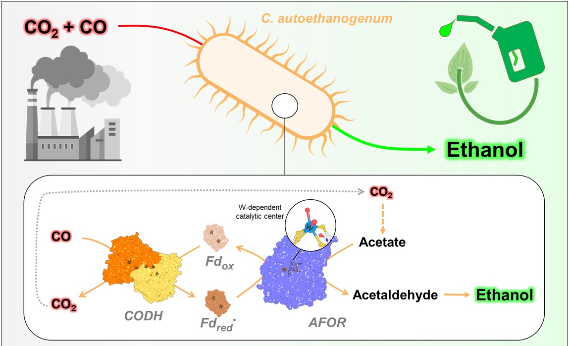 Obwohl das Bakterium bereits in vielen Industrieanlagen zur Herstellung von Ethanol eingesetzt wird, wusste man bisher nicht, wie die Ethanolproduktion genau abläuft. Ein wichtiger Schritt bei der Reaktion ist vermutlich die Reduktion von Acetat zu Acetaldehyd. Einige Fachleute hielten dies jedoch bei Organismen für nicht machbar. Die nun in Nature Chemical Biology veröffentlichte Studie klärt diesen Widerspruch auf und löst das Rätsel.
